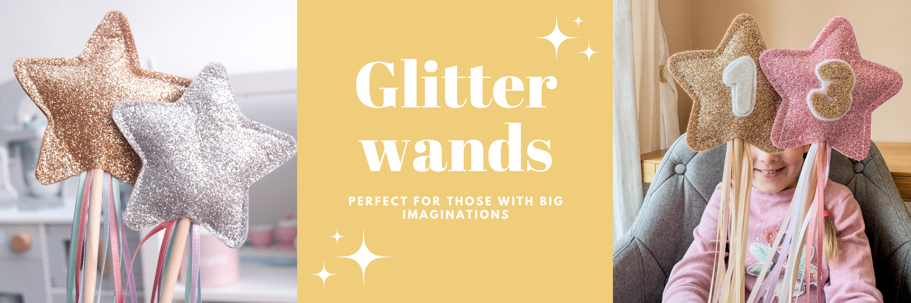 Beautiful handmade glitter wand – the perfect accessory for your little one’s imaginative playtime or magical birthday celebration! Whether they’re casting spells, dressing up as a fairy or wizard, or creating their own enchanted world, this wand adds a touch of sparkle to any special day.