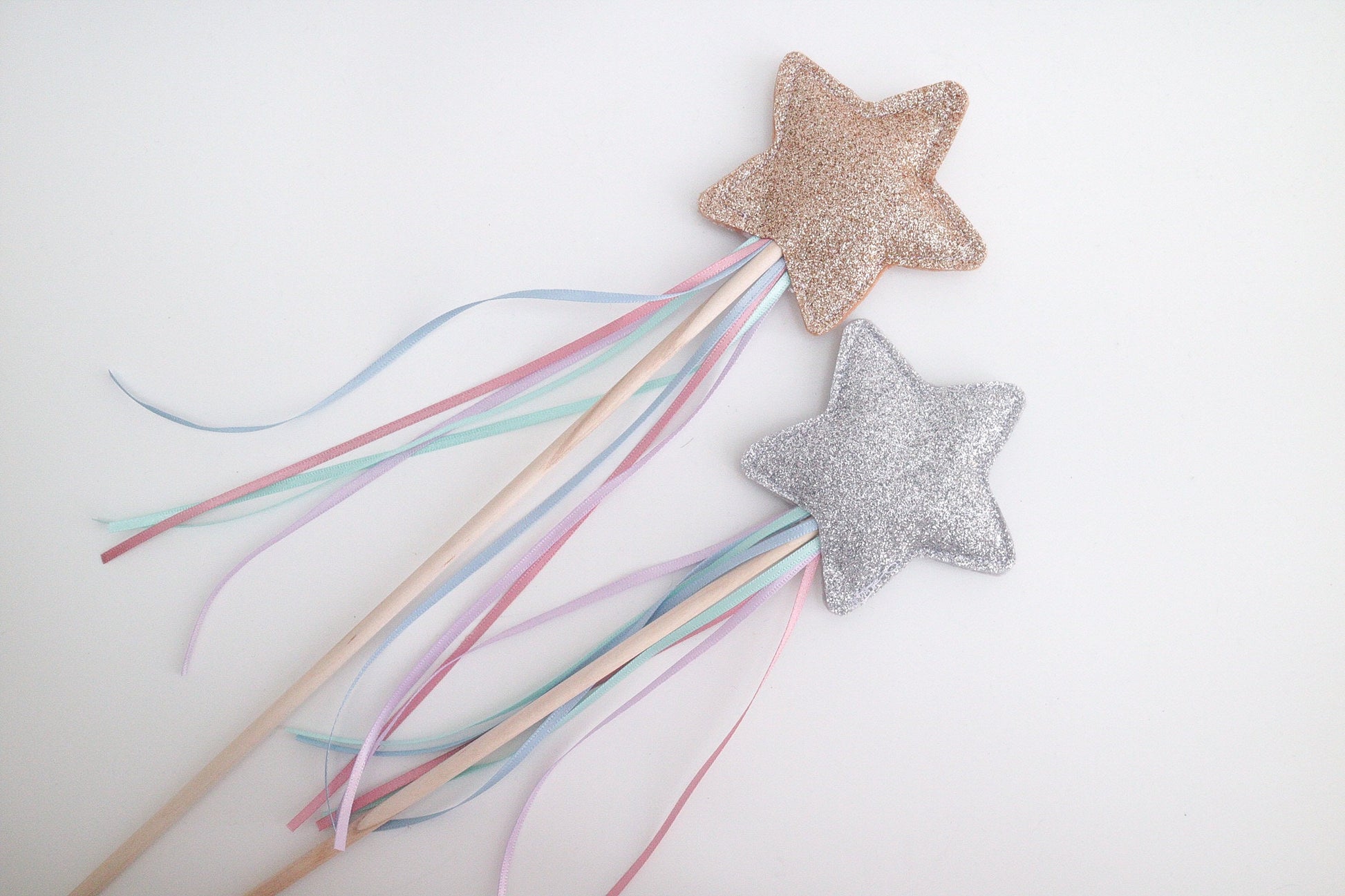 ✨ Choose your star colour: Available in silver, gold, blue, or pink glitter felt. Our pastel rainbow ribbons offer a charming, gender-neutral touch, making this wand a wonderful gift for any child who loves a bit of sparkle.
